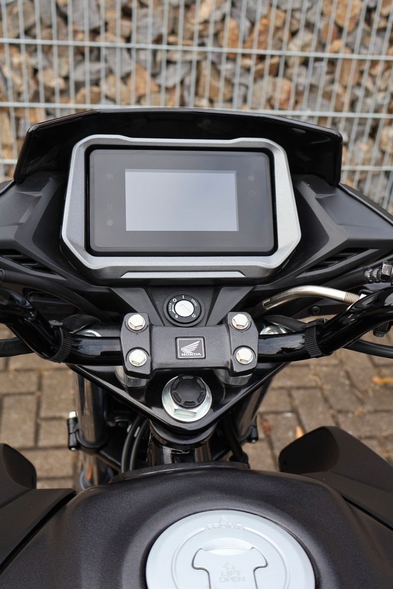 Die CB125F wurde von Grund auf neu gestaltet und hat dabei eine überarbeitete Front- und Heckverkleidung sowie neue LED-Scheinwerfer erhalten, die ihr ein moderneres Erscheinungsbild verleihen. Der neue 4,2-Zoll TFT-Bildschirm ist mit Bluetooth ausgestattet, sodass du Honda RoadSync nutzen kannst, um unterwegs immer auf dem Laufenden zu bleiben.