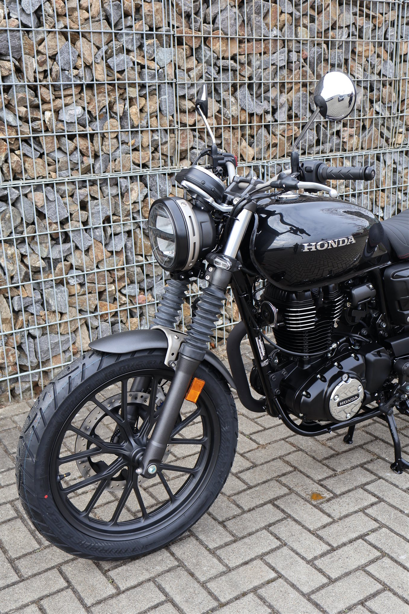 Dieses Motorrad kommt schnörkellos daher, verfügt jedoch über einen markanten Stil, der sich über Generationen hinweg beim Bau von Motorrädern entwickelt hat, bei denen der Fahrer zählt. Du stehst im Mittelpunkt. Der Doppelschleifen-Stahlrohrrahmen der GB350S wird ergänzt durch einen minimalistischen, aber ausdrucksstarken Stahltank und Seitenverkleidungen. Die Gabelfaltenbälge aus Gummi wirken klassisch und sind zugleich praktisch. Die schwarzen Details betonen die polierten Kühlrippen des Motors, die Proportionen stimmen einfach in jedem Detail. Außerdem kannst du dein Motorrad natürlich mit einer ganzen Palette an Honda Originalzubehör individuell gestalten. Was aus deiner GB350S wird, bleibt dir überlassen.